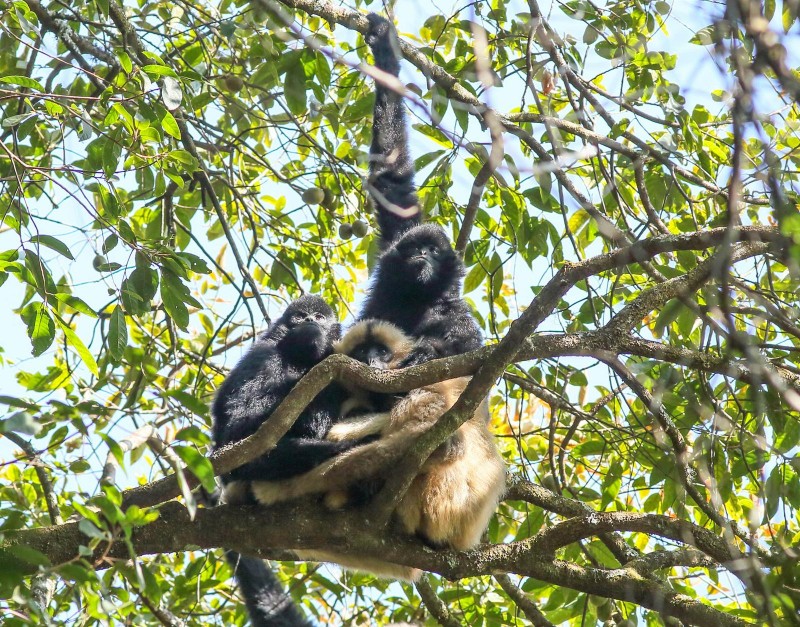 目前,中國分布有7種長臂猿,它們都是我國一級保護動物,屬于極度瀕?;驗l危,它們生活在我國海南、云南、廣西等熱帶或亞熱帶森林中。
