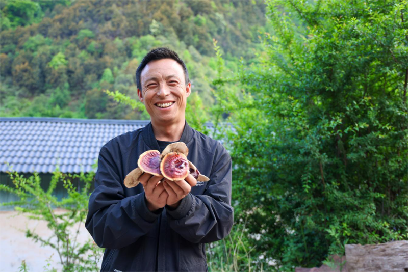 在石頭鄉(xiāng),村民胡周嶸因堅(jiān)持在林下試種靈芝,一度被人笑稱“瘋子”。面對(duì)失敗與質(zhì)疑,他深夜引水、鉆研滅菌技術(shù),終于獲得成功。2018年,他的靈芝種植純利潤(rùn)超20萬(wàn)元。富起來(lái)后,他主動(dòng)擔(dān)起帶頭人角色:“如果虧損,由我個(gè)人承擔(dān),不能讓老百姓虧?!比缃?,他成立公司,為村民提供菌包與技術(shù)服務(wù),帶動(dòng)上百戶農(nóng)戶增收。