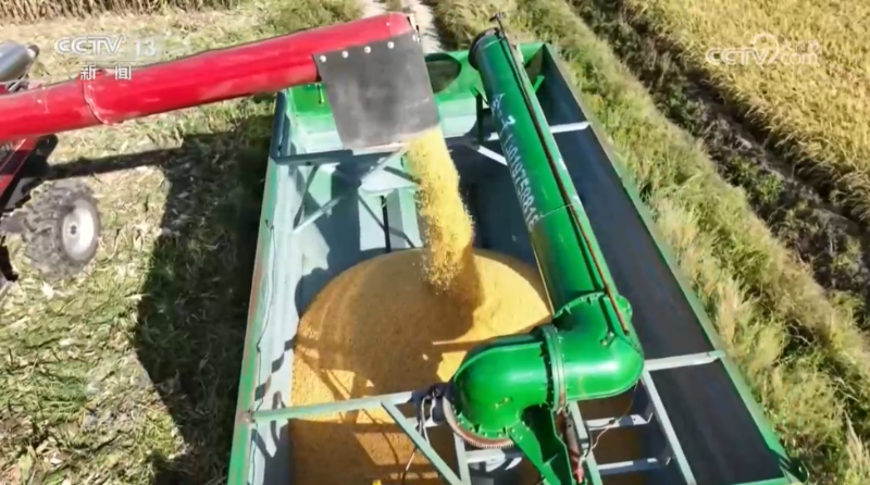 視線轉(zhuǎn)向東北。這里肩負(fù)著全國逾三分之一的秋糧產(chǎn)量,眼下已全面進(jìn)入收獲高峰期。在黑龍江富錦市金色的稻田里,大型收割機(jī)往來穿梭,脫粒、秸稈粉碎、還田一氣呵成。