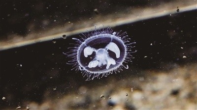 圖③:騰沖市生態(tài)攝影愛(ài)好者日前在水中偶遇通體透亮、形似透明小傘的生物,經(jīng)專家辨認(rèn),正是有“地球活化石”“水中大熊貓”之稱的桃花水母。桃花水母是溫帶淡水中的原始低等無(wú)脊椎動(dòng)物,生存史約5.5億年,早于恐龍數(shù)億年。(陳娟 畢爭(zhēng) 攝)