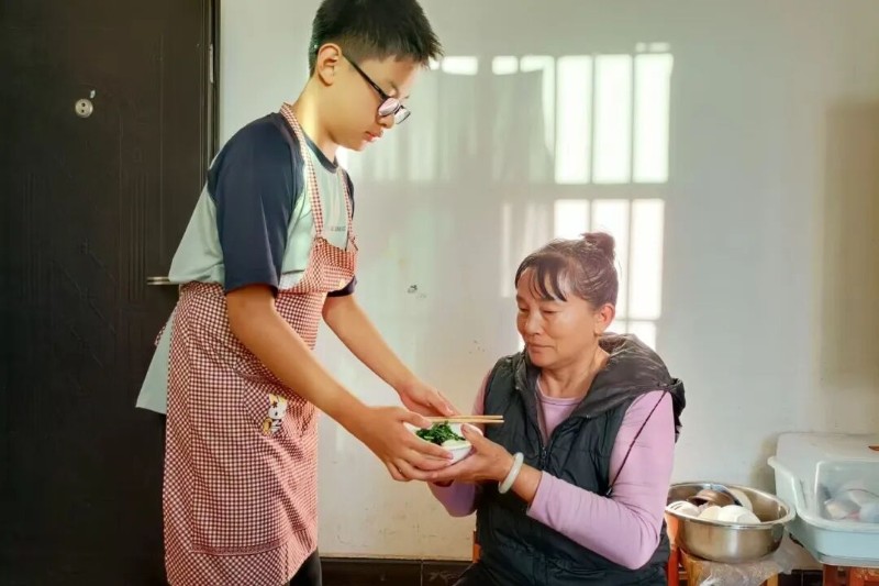 活動中,同學們積極用多樣方式傳遞敬老孝親之情:有的主動為父母捶背揉肩、分擔家務,讓辛勞的長輩歇一歇;有的親手為爺爺奶奶端上一杯熱茶、準備一頓簡單的飯菜,用煙火氣傳遞溫暖;還有的陪著長輩嘮家常、翻看老照片,傾聽歲月里的故事。一張張認真的臉龐、一個個暖心的舉動,不僅讓長輩們感受到來自孩子的愛意,更讓同學們在實踐中懂得了“感恩”與“責任”的重量。
