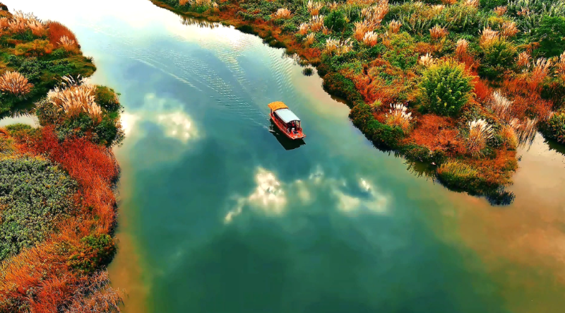 一叢叢、一片片,如大地的絨毯鋪向遠方,風起時,粉白的蘆浪簌簌起伏,柔軟了天地,也撫慰了每一顆遠道而來的心。