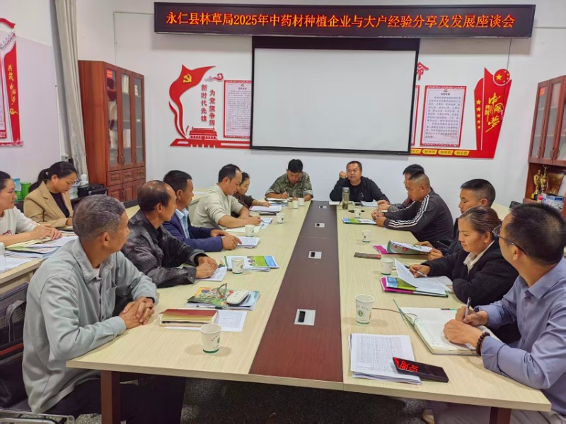 為深入推動永仁縣中藥材產(chǎn)業(yè)高質(zhì)量發(fā)展,交流種植經(jīng)驗,凝聚發(fā)展共識,謀劃產(chǎn)業(yè)未來,近日,永仁縣林草局組織召開了2025年中藥材種植企業(yè)與種植大戶經(jīng)驗分享及發(fā)展座談會。全縣主要中藥材種植企業(yè)負(fù)責(zé)人、種植大戶代表、相關(guān)領(lǐng)域技術(shù)專家及林草局相關(guān)負(fù)責(zé)同志共計20余人齊聚一堂,共商發(fā)展大計。