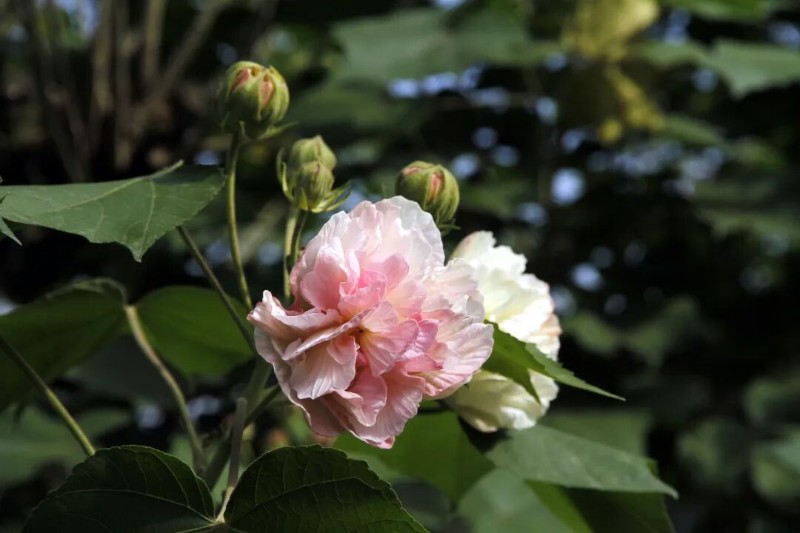 不妨來到植物園,看木芙蓉在枝頭“變裝”,