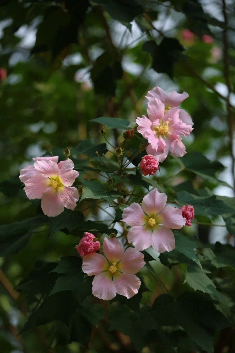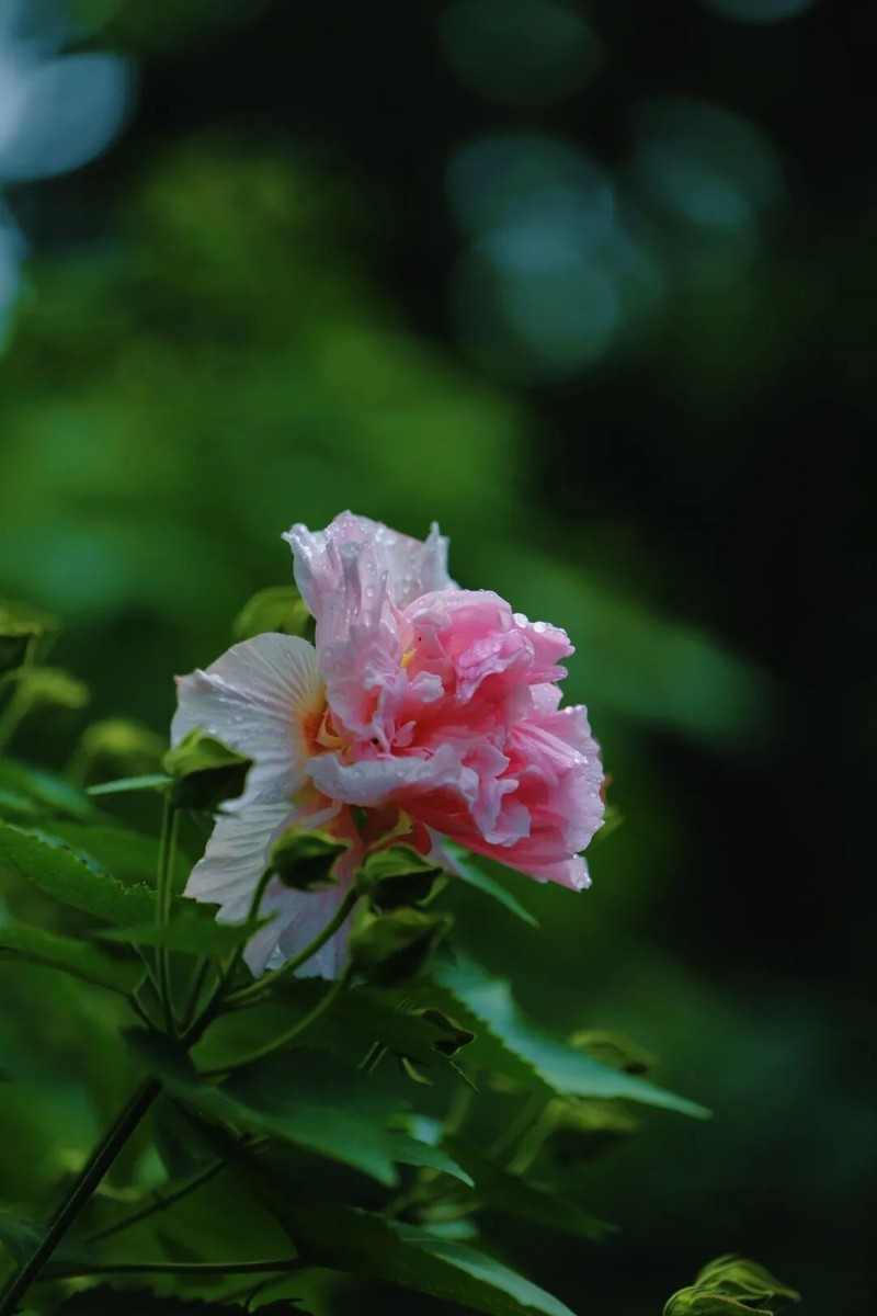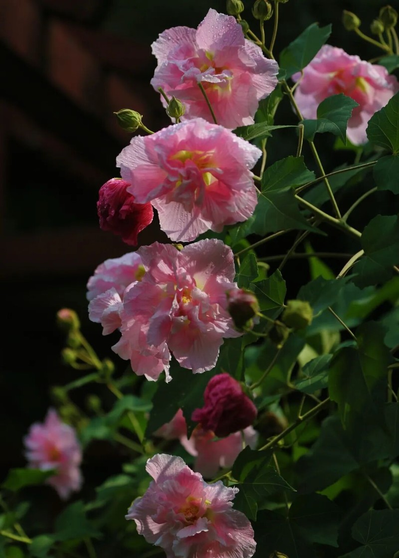 王安石曾寫下“正似美人初醉著,強抬青鏡欲妝慵”,讀來仿佛能看到一位嬌憨的佳人,剛從微醺中醒來,慵懶地抬手拿起銅鏡,那模樣與清晨帶著露珠、微微垂首的木芙蓉何其相似,嬌柔又動人。