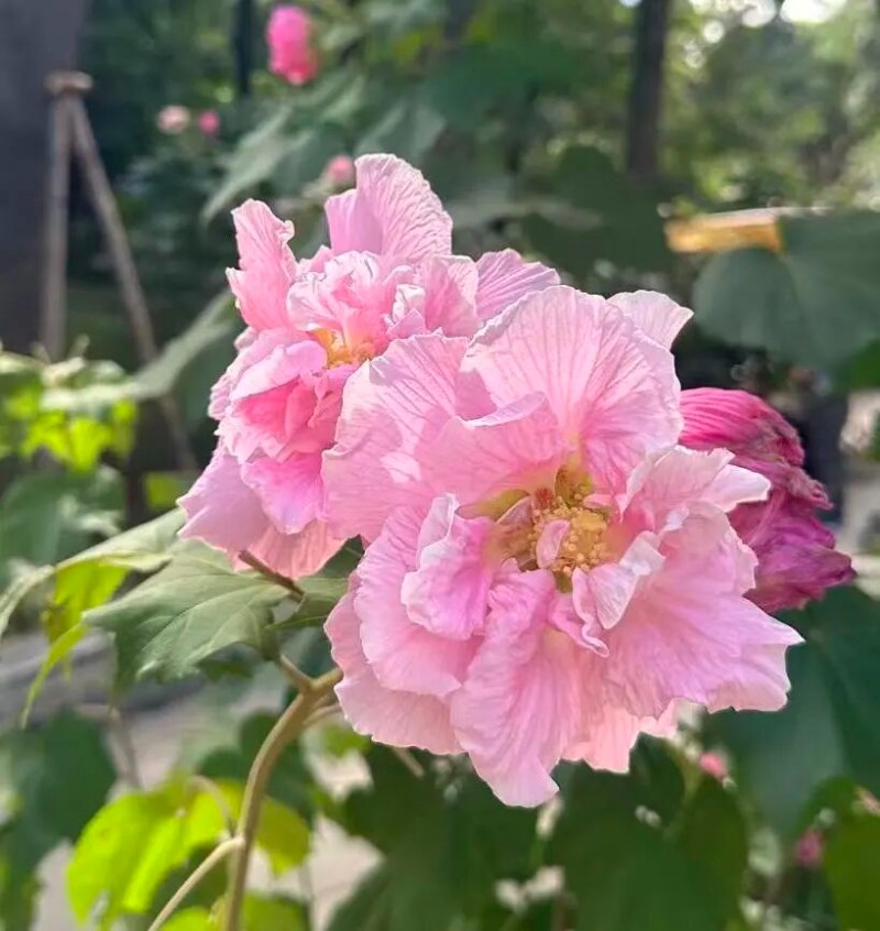 蘇軾則用“千林掃作一番黃,只有芙蓉獨自芳”,道盡了木芙蓉的獨特品格,滿林樹葉都黃得打蔫,就它頂著滿樹花,迎著秋風開得熱鬧,活脫脫深秋里的倔強顯眼包??。也正因這敢跟寒霜叫板的脾氣,它還得了個“拒霜花”的霸氣外號,妥妥的“花界硬氣美人”!
