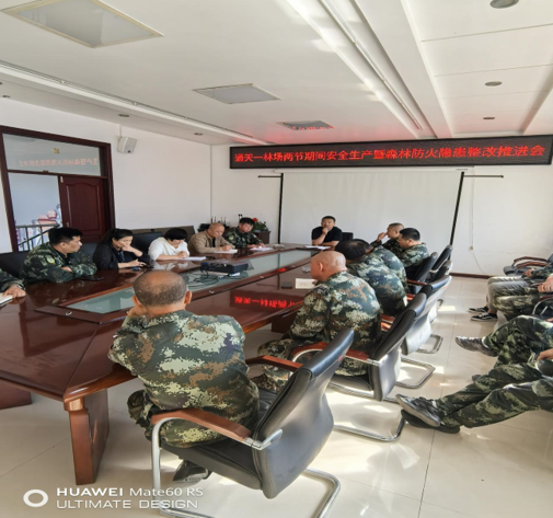 隨著國(guó)慶節(jié)、中秋節(jié)臨近,通天一林場(chǎng)組織召開兩節(jié)期間安全生產(chǎn)暨森林防火隱患整改推進(jìn)會(huì)議,部署關(guān)鍵任務(wù),筑牢安全屏障。會(huì)議由場(chǎng)長(zhǎng)馬軍同志主持,全體辦公室人員參加此次會(huì)議。