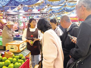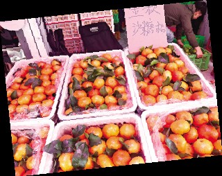 篆新農(nóng)貿(mào)市場(chǎng)內(nèi),外地游客正在選購(gòu)冰糖橙寄往老家 本版圖片 ■ 都市時(shí)報(bào)全媒體記者 鄭榮行