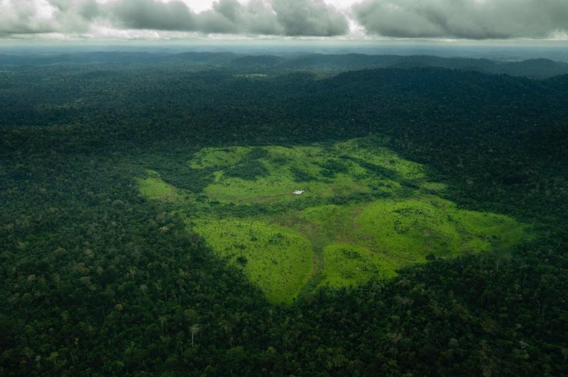 2025年6月13日,巴西帕拉州,伊圖納/伊塔塔原住民領(lǐng)地,航拍畫面顯示,為牧牛而砍伐的森林。該地是未接觸外部世界的原住民的家園。視覺中國 資料圖