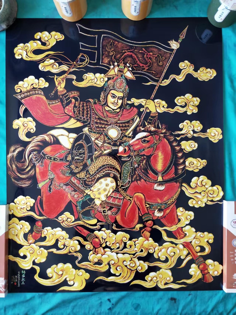 注:為日月峽相紙溶刻藝術(shù)研究所趙麗穎研究員創(chuàng)作之《藏族人民心中的英雄格薩爾王》系列作品,填破陣子詞,為其精彩創(chuàng)作點(diǎn)贊。