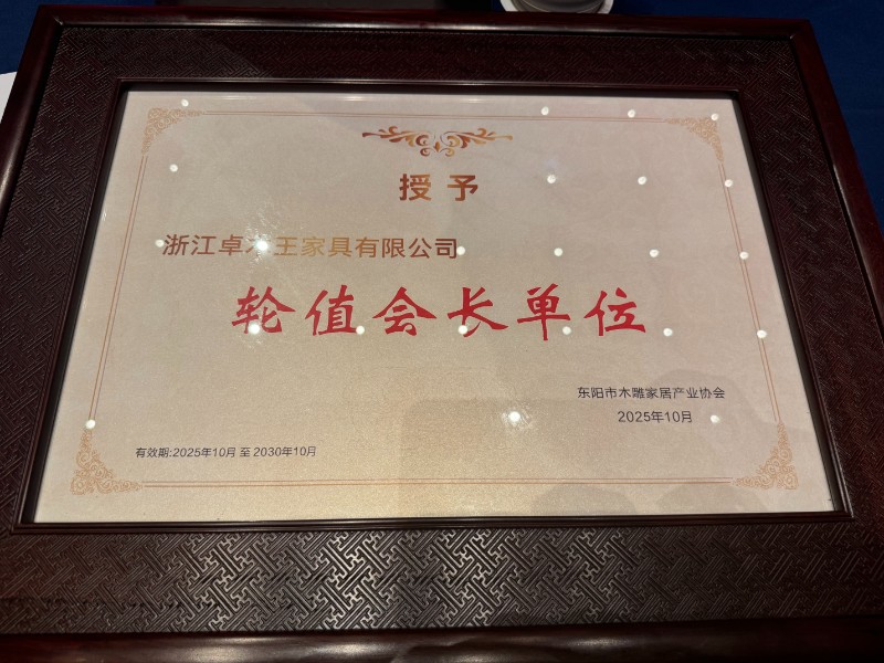 在大會上,卓木王總裁杜長江當(dāng)選東陽木雕家居產(chǎn)業(yè)協(xié)會輪值會長,卓木王被授予東陽木雕家居產(chǎn)業(yè)協(xié)會輪值會長單位稱號。這一榮譽(yù)不僅是協(xié)會對卓木王綜合實力的高度認(rèn)可,更標(biāo)志著卓木王將在推動?xùn)|陽木雕家居產(chǎn)業(yè)創(chuàng)新升級、傳承文化精髓、拓展市場空間等方面承擔(dān)起更重要的責(zé)任。