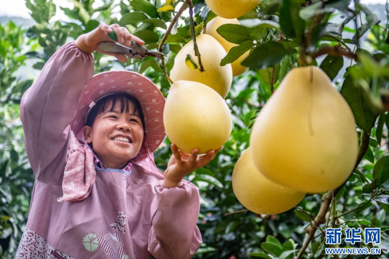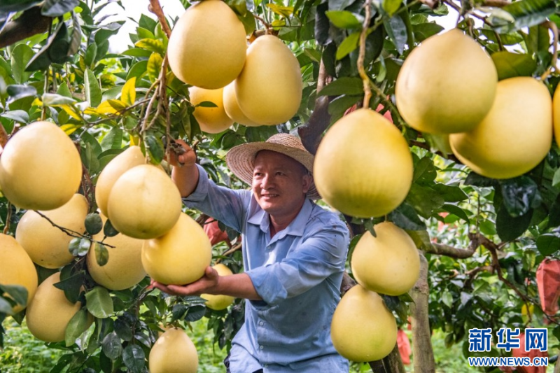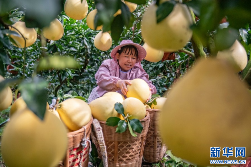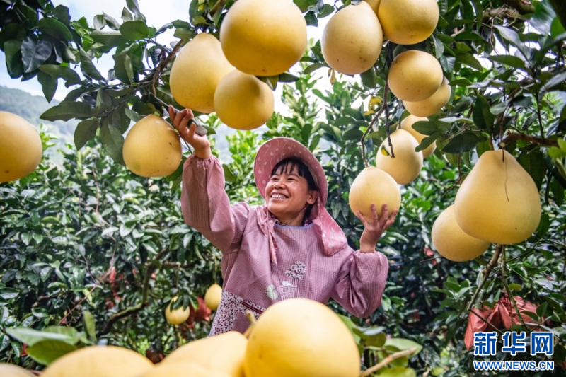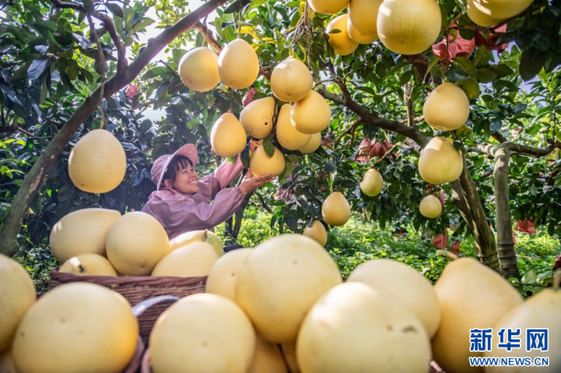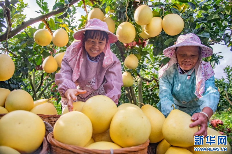 金秋時節(jié),各地農(nóng)民搶抓農(nóng)時,有序開展秋收、秋種、秋管等農(nóng)事活動,田間地頭一派繁忙景象。在云南省文山壯族苗族自治州西疇縣雞街鄉(xiāng)下壩村,沉甸甸的柚子掛滿枝頭,豐收景象讓果農(nóng)臉上綻放笑容。 在云南省西疇縣雞街鄉(xiāng)下壩村,村民正在采摘柚子(10月15日攝)。新華網(wǎng)發(fā)(熊平祥 攝)