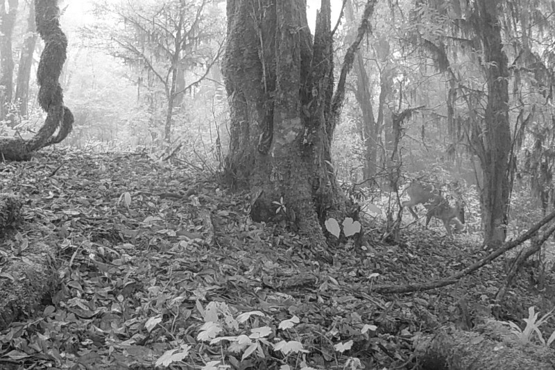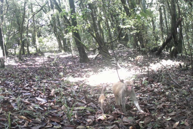 紅外相機還在多地精準捕捉到國家二級重點保護野生動物白鷴媽媽帶領小白鷴外出覓食的精彩畫面,國家“三有”野生動物赤麂母子同框的影像。