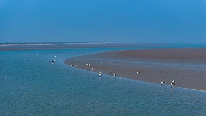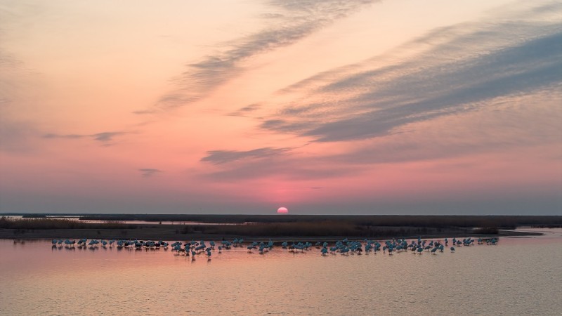 圖為在山東黃河三角洲國家級自然保護(hù)區(qū)拍攝的鳥景