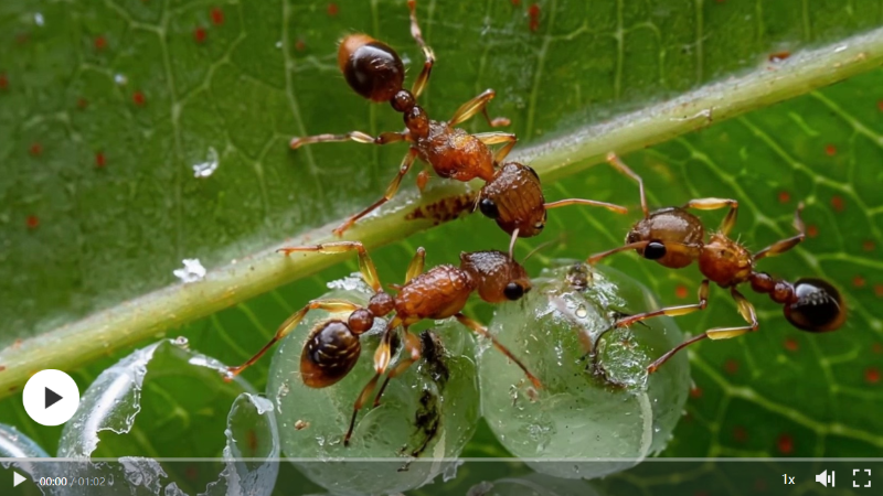 在廣袤無垠的自然界中,昆蟲以其獨特的生命形態(tài)和生存智慧,占據著不可或缺的地位。云南省文山壯族苗族自治州多樣的氣候條件與復雜的生態(tài)系統(tǒng),為各類昆蟲提供了棲息繁衍之所,是各種昆蟲生活的樂園。為深入學習貫徹習近平生態(tài)文明思想,倡導人與自然和諧共生的生態(tài)文明觀,“學習強國”云南平臺、“學習強國”文山州平臺聯合策劃推出“微距下的昆蟲世界”系列科普視頻,通過微觀鏡頭探索昆蟲的世界,帶領大家在微觀世界里讀懂生物多樣性的密碼,感受人與自然和諧共生的深意。今天推出《鋪道蟻的美餐》。 統(tǒng)籌:唐莉娜 和曉 李云淑 策劃:陳慧 李云淑 視頻/AI制作:楊晶圣 編審:彭雪青 素材來源:《微距下的昆蟲世界》(云南省文山壯族苗族自治州攝影愛好者劉海春著,海峽書局出版),視頻以書中圖片為基礎,由AI技術制作。 ※轉載請注明出處