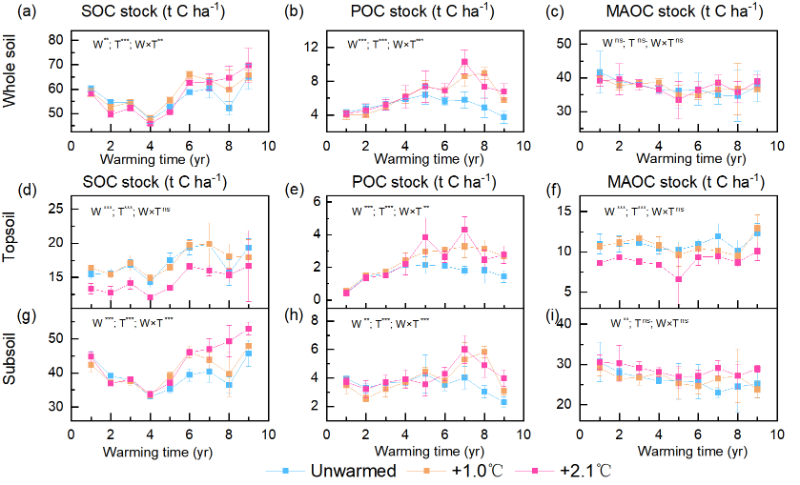 圖1. 增溫對(duì)南亞熱帶森林土壤有機(jī)碳及其組分的影響