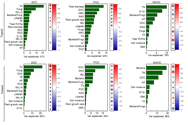 圖2. 生物與非生物因子對(duì)土壤有機(jī)碳及其組分的影響