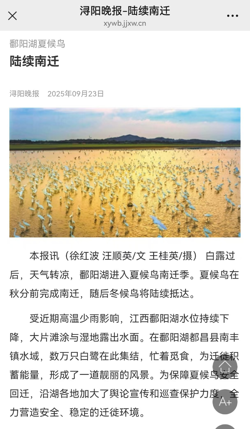 潯陽晚報(bào):鄱陽湖夏候鳥陸續(xù)南遷