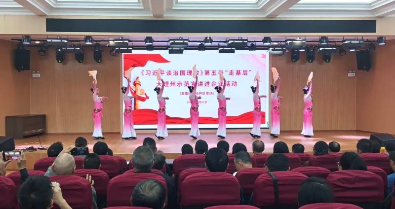 這是10月21日下午,《習近平談治國理政》第五卷“走基層”大理州示范宣講進企業(yè)云南祥云經(jīng)開區(qū)的專場活動的現(xiàn)場,這場“文藝宣講 理論宣講 實踐分享 互動交流”形式更接地氣,讓宣講從“一個人講”變成了“一群人講”。