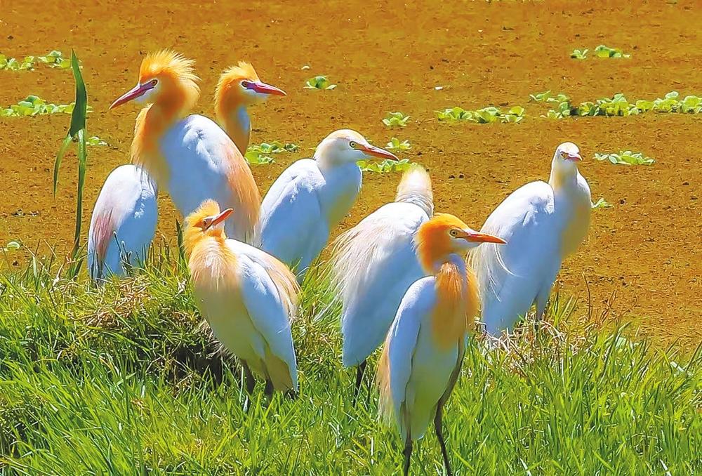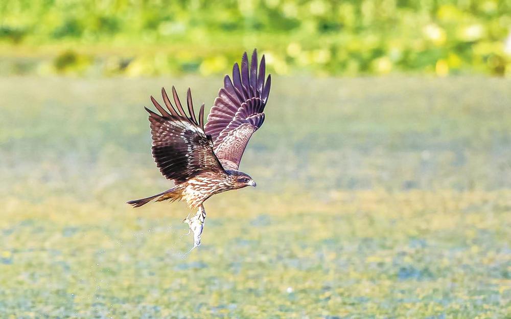 如今40年過去,當(dāng)年的“稀客”早已成了“??汀薄诖浜珗@,黑水雞在蘆葦叢中鉆來鉆去,亞成鳥的灰褐色羽毛與水草融為一體,尋食時(shí)偶爾露出的紅額,是成鳥獨(dú)有的身份標(biāo)識(shí);傍晚時(shí)分,夜鷺會(huì)抖落翅膀上的水珠,從江岸樹梢滑翔至水面,在空中劃出一道利落的弧線;白鷺最是靈動(dòng),黑嘴黃腳的模樣格外討喜。若是繁殖季,頭頂還會(huì)冒出兩根細(xì)長的“發(fā)辮”,在風(fēng)中輕輕晃動(dòng);體形更大的蒼鷺則偏愛清靜,大多喜歡待在盤龍江人少的河段或大觀樓草海。