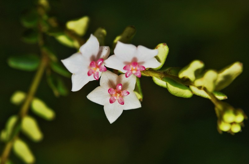 在深山密林中,一簇簇紫白分明的恩格勒球蘭花在藤蔓間搖曳生姿,伴著秋風(fēng)散發(fā)出淡淡的花香,香氣四溢,沁人心脾。五星形的主花冠潔白無瑕,特別是副花冠上那五枚紫瑩瑩的晶體,紅中帶紫,紫里透亮,酷似一顆顆鑲嵌在主花冠的天然紫水晶,格外養(yǎng)眼。
