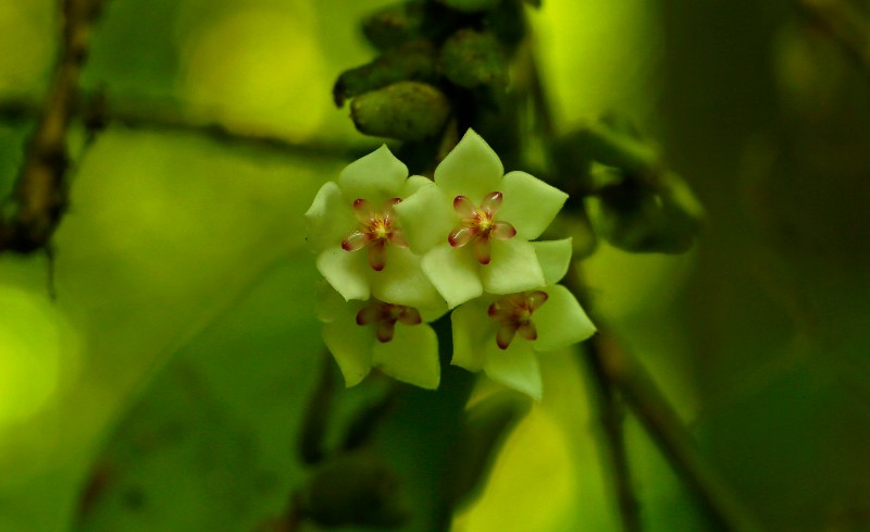 恩格勒球蘭是2021年報(bào)道的中國(guó)新記錄物種,球蘭屬植物主要有攀援型和懸垂型兩種類型。野生恩格勒球蘭在我國(guó)主要分布于云南等地,分布范圍狹窄,具有較高保護(hù)價(jià)值和觀賞價(jià)值。在云南龍陵主要生長(zhǎng)在原始密林的樹干上或濕潤(rùn)的常綠闊葉之中。