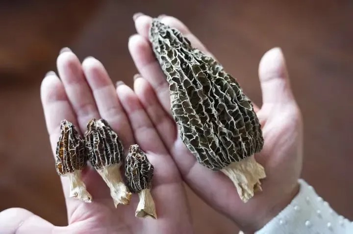 左邊是普通羊肚菌,右邊是經(jīng)由航天育種技術(shù)培育的羊肚菌。(新華社記者 陳欣波 攝)