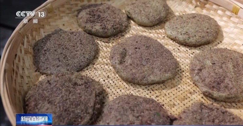 加入新鮮石斛汁液的糯米飯變得又香又糯,在一雙雙巧手里變成一張張綠色餅皮,包上豆沙餡料,外面再裹上香脆的蘇子,一個(gè)糯香四溢的石斛霜降粑就做好了。