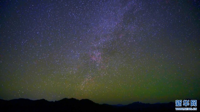 用延時(shí)攝影在云南騰沖新岐冒盔山拍攝到的星空美景(視頻截圖)。