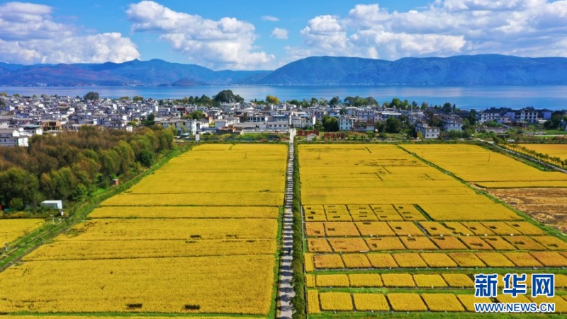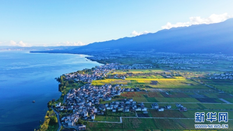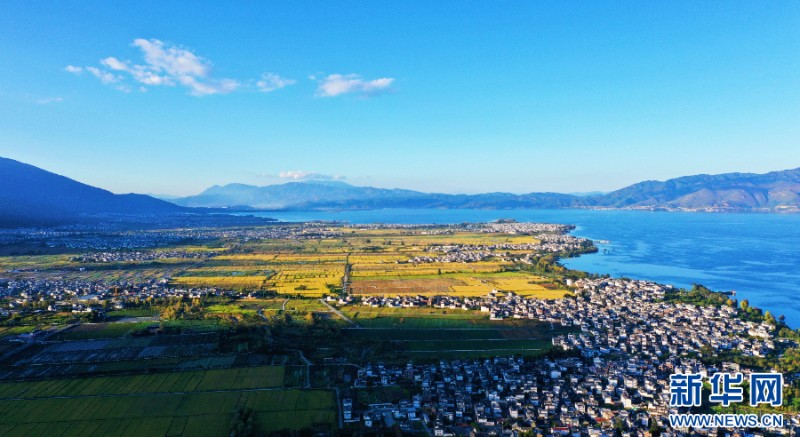 大理洱海、村莊、稻田相映成景(10月25日攝)。新華網(wǎng) 趙普凡 攝