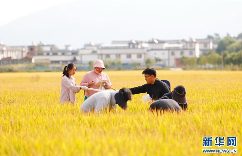 大理古生村科技小院的學(xué)生在稻田里測產(chǎn)(10月23日攝)。新華網(wǎng) 趙普凡 攝
