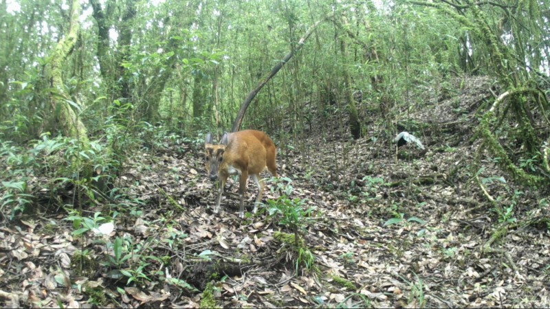 此外,紅外相機(jī)還拍攝到國(guó)家二級(jí)保護(hù)動(dòng)物林中仙子白鷴集體覓食的大場(chǎng)面。更為罕見的是,紅外相機(jī)還捕捉到赤麂和白鷴同框覓食的精彩影像。