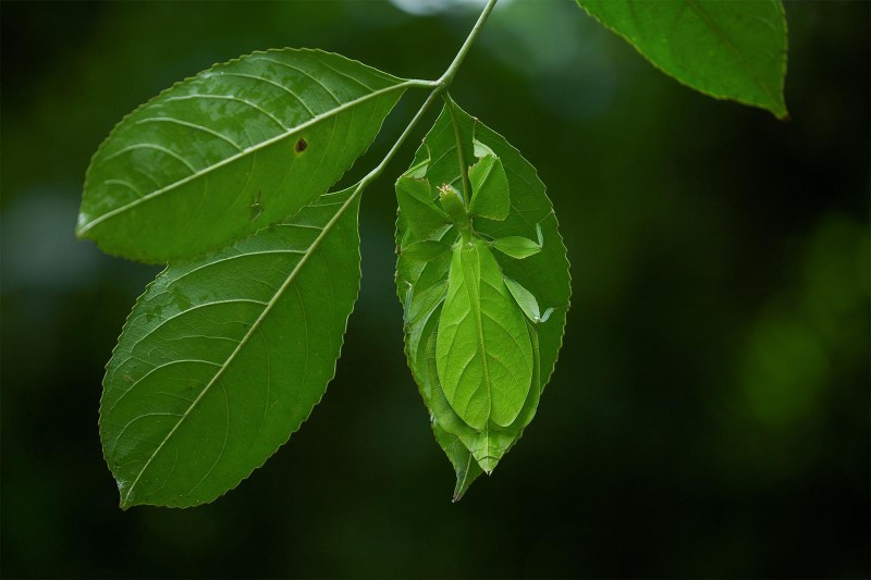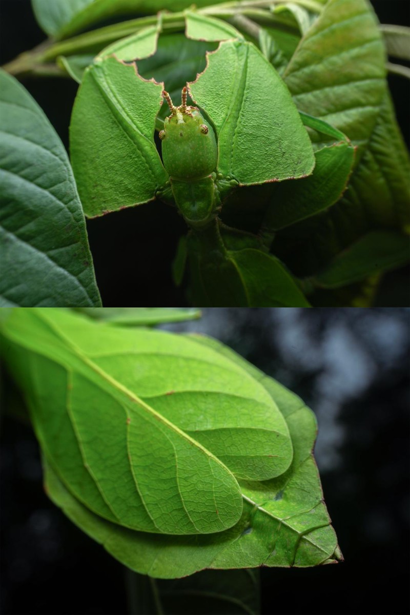 據(jù)調(diào)查團隊介紹,這只滇葉?棲息于一株越南山香圓植物上,從個體形態(tài)可明確判斷為成體雌性。當?shù)厝罕姳硎?,此前曾偶然見過這類“葉子蟲”,但其外形與樹葉高度相似,不仔細觀察很難分辨。專家進一步解讀,滇葉?的擬態(tài)能力堪稱昆蟲界的“偽裝大師”:頭部與常見葉?形態(tài)相近,而胸部、腹部的形態(tài)與紋路完全模擬樹葉特征——前肢不僅演化成葉片形狀,邊緣還擬態(tài)出自然界中樹葉腐蝕的色彩;背部鞘翅宛如一片完整的嫩葉,與植物葉片重合時,肉眼幾乎無法識別。更令人稱奇的是,它還能通過調(diào)整身體顏色深度實現(xiàn)精準隱藏,背部呈嫩綠色、腹部為暗綠色,完美融入周邊生態(tài)環(huán)境,有效規(guī)避天敵威脅。