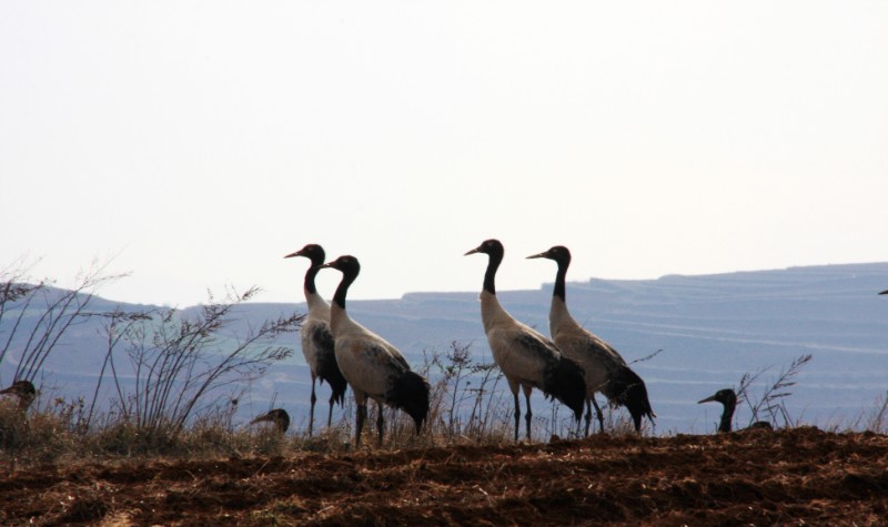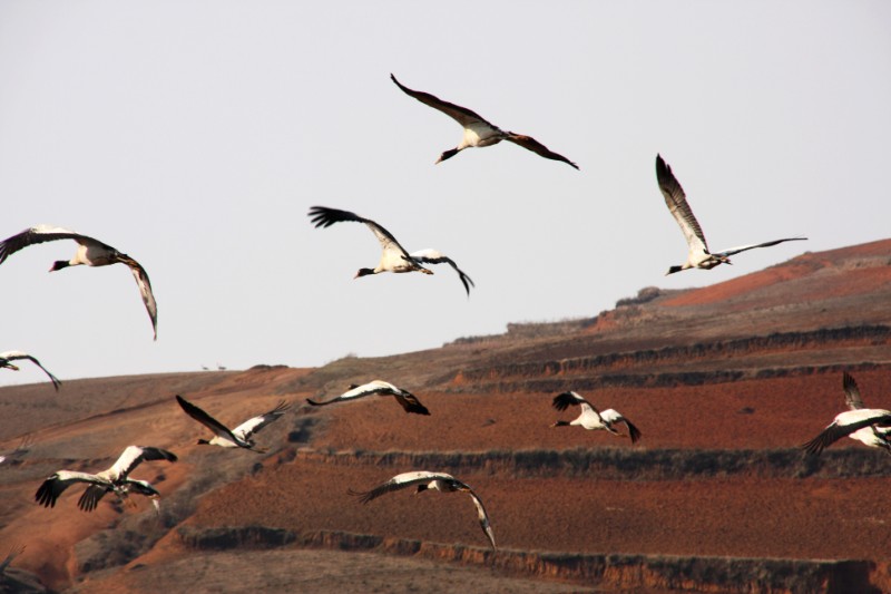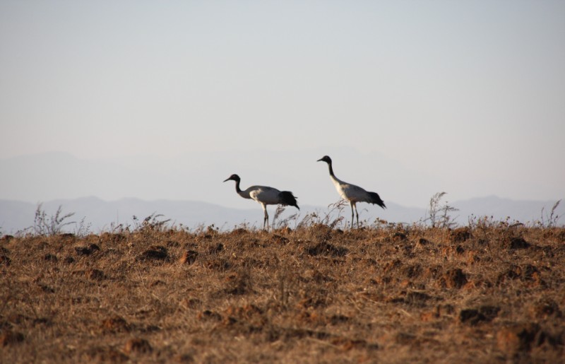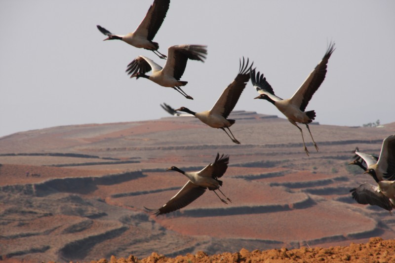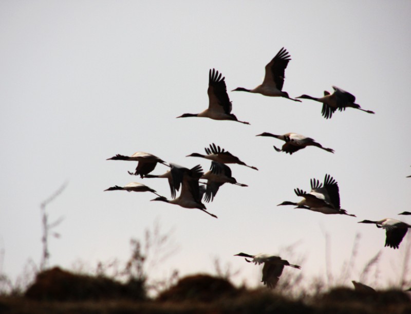 攝影愛好者在云南省曲靖市會澤縣念湖濕地保護區(qū),拍攝到了國家一級保護野生動物黑頸鶴。