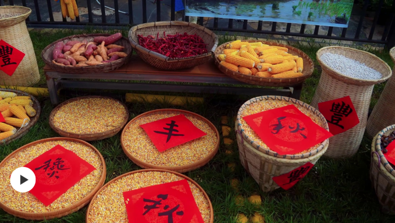 每年的9月到11月,是昆明安寧農村的“曬秋”季。每到這時,稻谷飄香、瓜果甜美,房前屋后的空地便會成為最熱鬧的“曬場”,村民們會把玉米、辣椒、南瓜等色彩斑斕的農作物放在曬匾中、懸掛在繩索上,再巧妙地將其進行排列組合,形成一幅幅豐富多彩的秋日圖景。