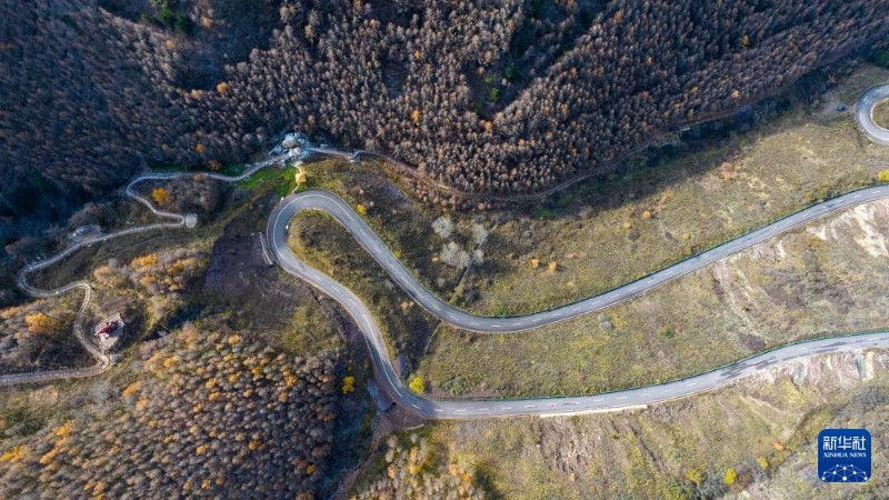 10月26日在位于寧夏固原市隆德縣的寧夏六盤山紅軍長征景區(qū)拍攝的秋景(無人機照片)。
