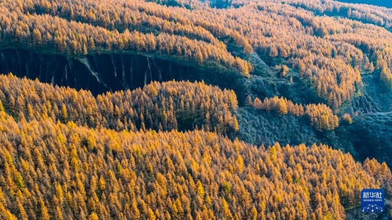 10月27日在寧夏固原市隆德縣六盤山北聯(lián)池拍攝的秋景(無人機照片)。