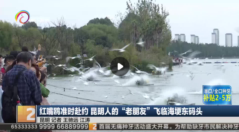 紅嘴鷗準(zhǔn)時赴約 昆明人的“老朋友”飛臨海埂東碼頭
